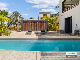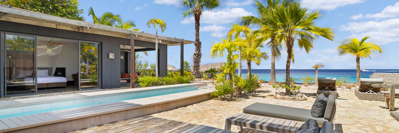 Buiten zet de relaxte sfeer van Bonaire zich voort op het heerlijke terras dat direct aan de zee gelegen is. Op het terras is een heerlijk zwembad met loungebedden en stoelen. Ook zijn er hangmatten en palapa’s voor wat schaduw.