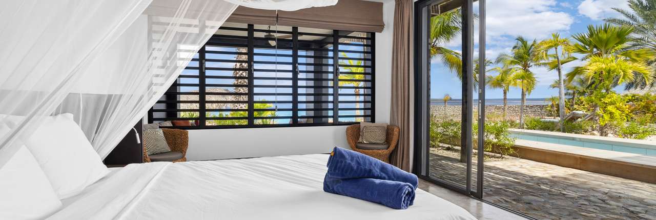 De vier slaapkamers bevinden zich op de begane grond. Alle slaapkamers hebben een airconditioning en en-suite badkamer. In een van de slaapkamers is tevens een kleine kitchenette.