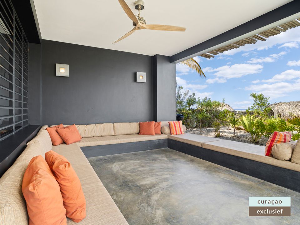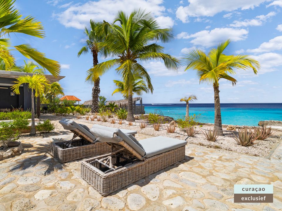 Buiten zet de relaxte sfeer van Bonaire zich voort op het heerlijke terras dat direct aan de zee gelegen is. Op het terras is een heerlijk zwembad met loungebedden en stoelen. Ook zijn er hangmatten en palapa’s voor wat schaduw.