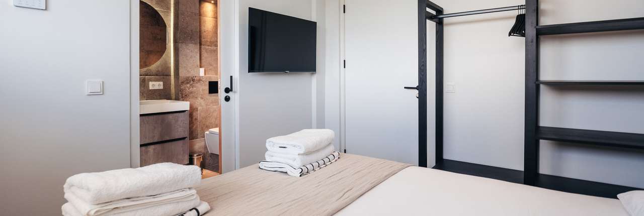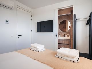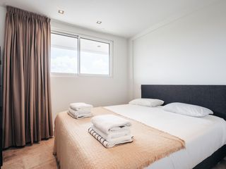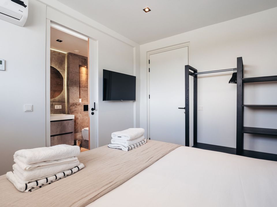 Het appartementen beschikt over 2 gezellige tweepersoonsslaapkamers, elk met een kingsize bed (1.80m x 2.00m), airconditioning, voldoende kastruimte en een en-suite badkamer. Beide badkamers zijn strak ontworpen en voorzien van een toilet. Daarnaast is er ook nog een los gastentoilet aanwezig.