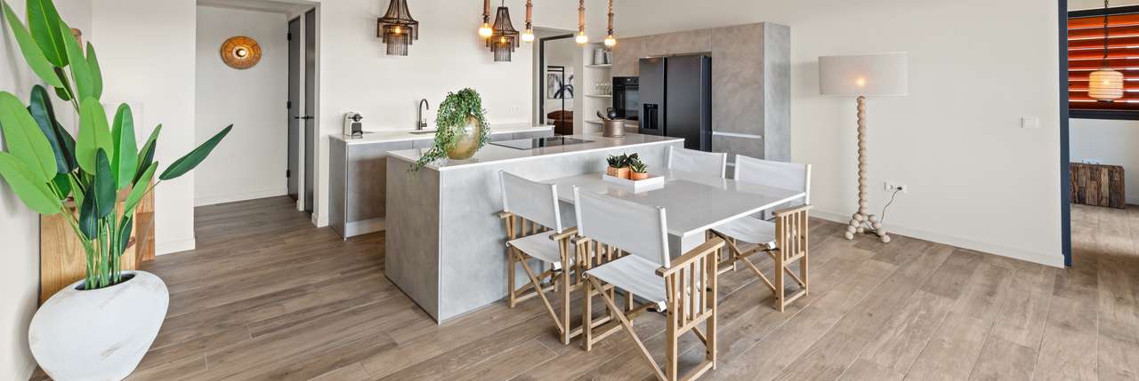 Op de eerste verdieping van deze smaakvolle villa bevindt zich de woonkeuken.