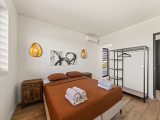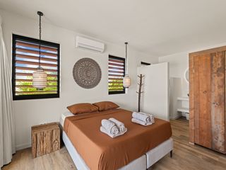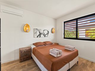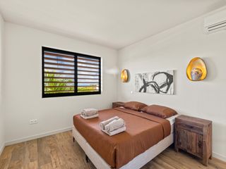 Daarnaast bevinden zich op de begane grond twee appartementen met een ruim, schaduwrijk terras. Beide appartementen beschikken over een woonkamer met open keuken, een slaapkamer met een ensuite badkamer.