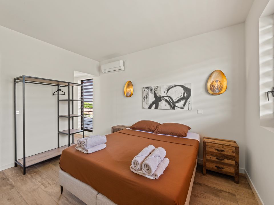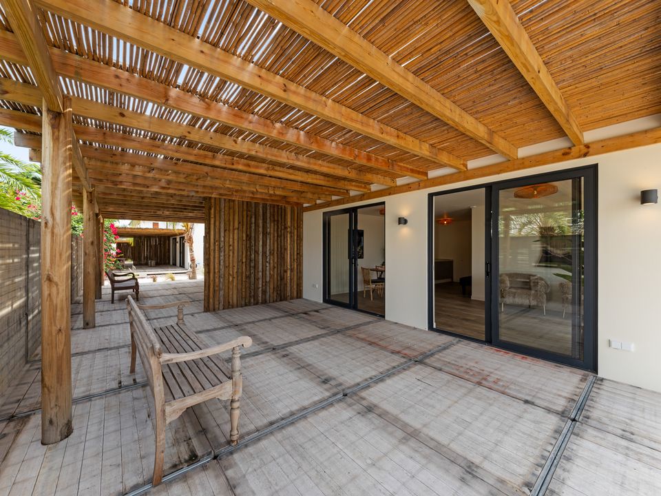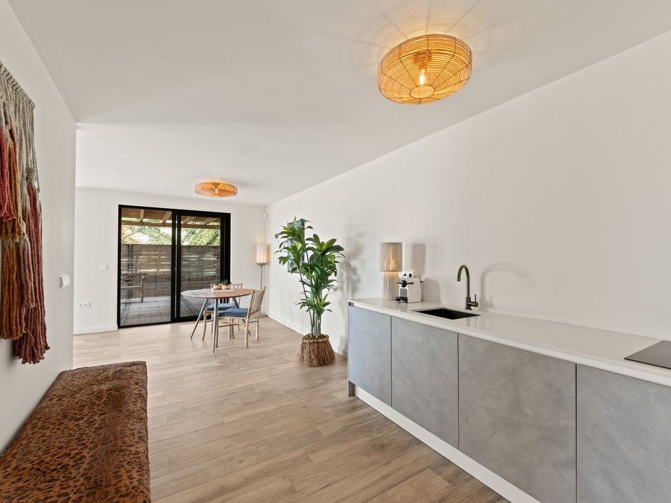 Daarnaast bevinden zich op de begane grond twee appartementen met een ruim, schaduwrijk terras. Beide appartementen beschikken over een woonkamer met open keuken, een slaapkamer met een ensuite badkamer.
