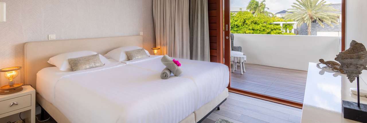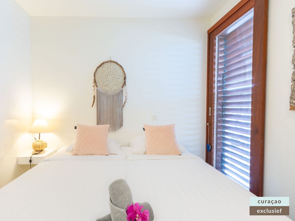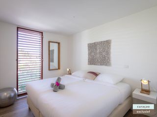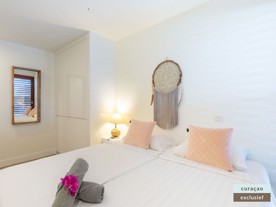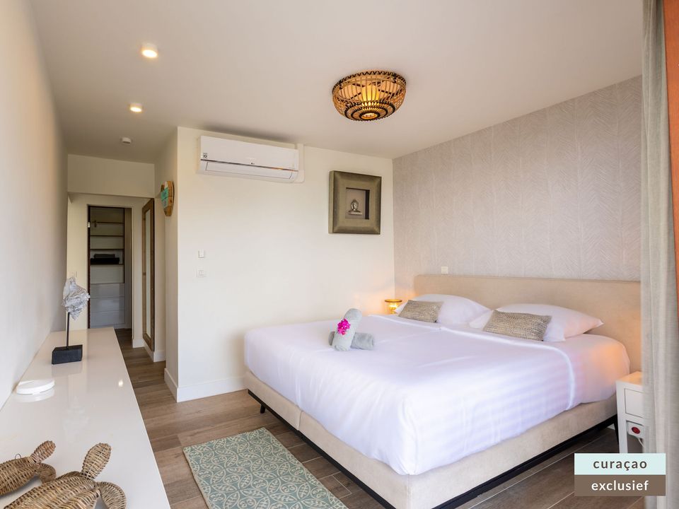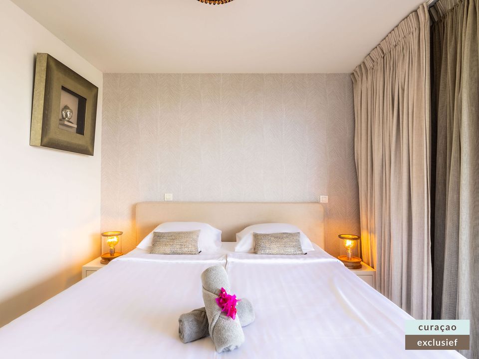 Er zijn drie 2-persoonsslaapkamers, voorzien van airconditioning. De master bedroom heeft een eigen badkamer en balkon met zeezicht, de andere 2 slaapkamers delen een badkamer.