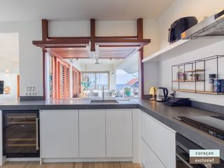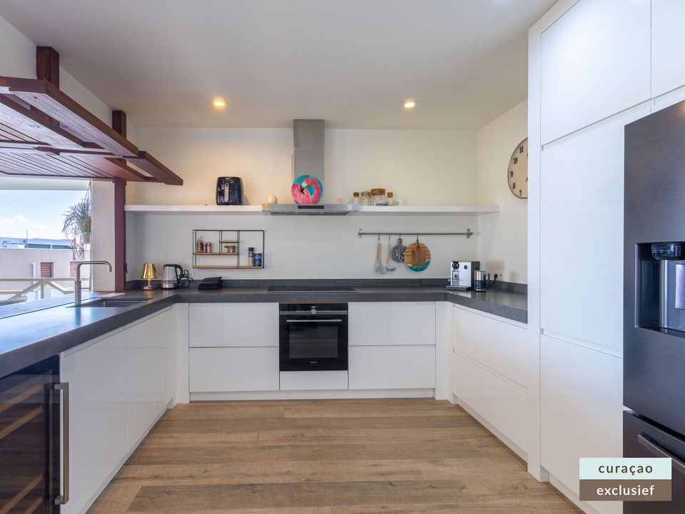 De grote open keuken is zeer compleet uitgerust en voorzien van alle denkbare keukenapparaten zoals Amerikaanse koelkast, oven, vaatwasser, Nespresso koffiezetapparaat, airfyer en wijnkoeler.