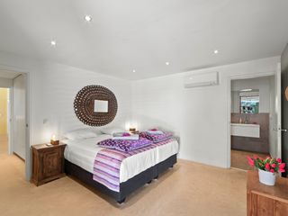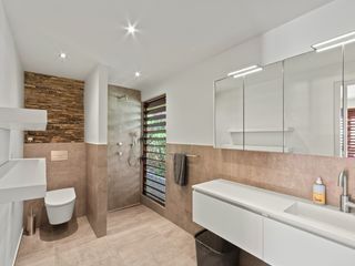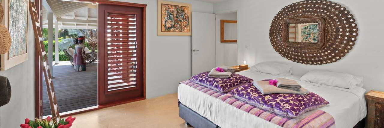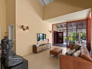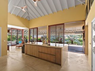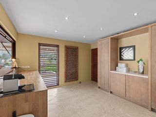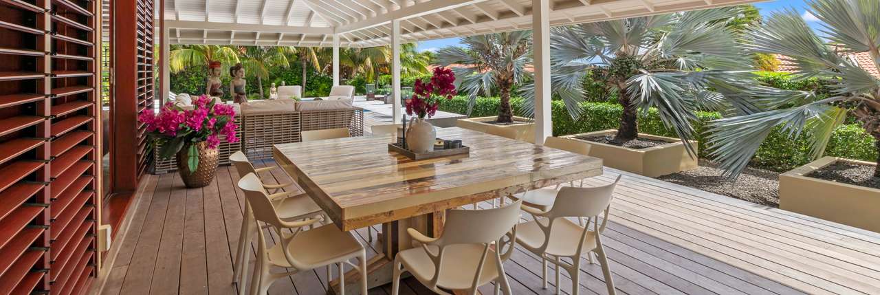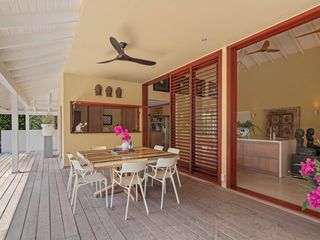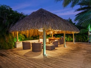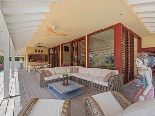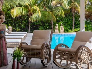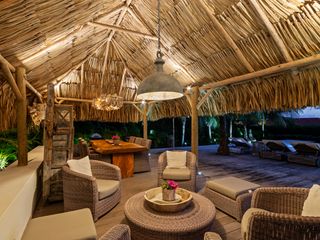 Die Veranda ist für ein luxuriöses Leben im Freien mit einem großen Esstisch und einer bequemen Lounge-Garnitur eingerichtet, damit Sie das Leben in den Tropen optimal genießen können. Der großzügige Garten verfügt über eine gemütliche Palapa, in der Sie sich wunderbar entspannen können. Am Pool gibt es eine Regendusche und 4 Liegestühle.