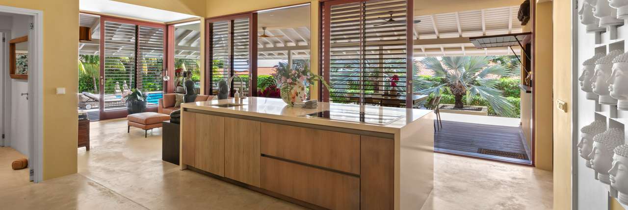 Insgesamt verfügt die Villa über vier klimatisierte Schlafzimmer und vier Badezimmer, die alle mit einer luxuriösen Regendusche ausgestattet sind. Das gemütlich eingerichtete Wohnzimmer verfügt über eine geräumige Sitzecke mit Fernseher (alle niederländischen Sender und Netflix). Das Wohnzimmer verfügt sogar über eine eigene Kochinsel!