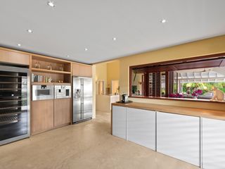 Die großzügige und offene Küche ist komplett ausgestattet und verfügt unter anderem über einen amerikanischen Kühlschrank, einen Weinkühler, einen Backofen, einen Geschirrspüler, eine Senseo- und eine Nespresso-Kaffeemaschine. Außerdem sind eine Waschmaschine und ein Trockner vorhanden.