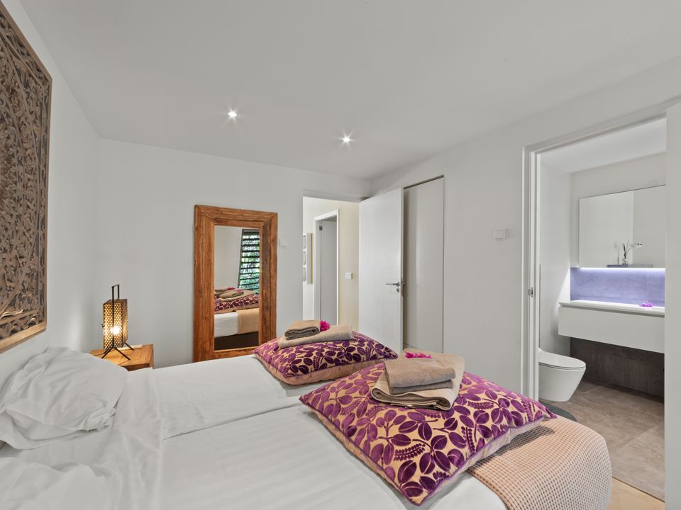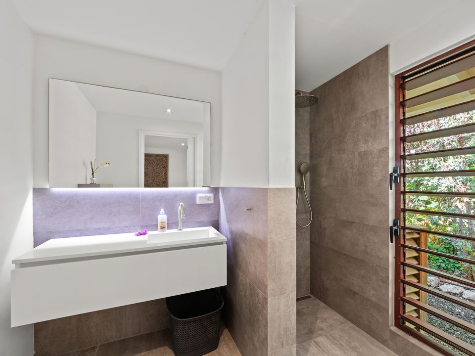 Insgesamt verfügt die Villa über vier klimatisierte Schlafzimmer und vier Badezimmer, die alle mit einer luxuriösen Regendusche ausgestattet sind. Das gemütlich eingerichtete Wohnzimmer verfügt über eine geräumige Sitzecke mit Fernseher (alle niederländischen Sender und Netflix). Das Wohnzimmer verfügt sogar über eine eigene Kochinsel!