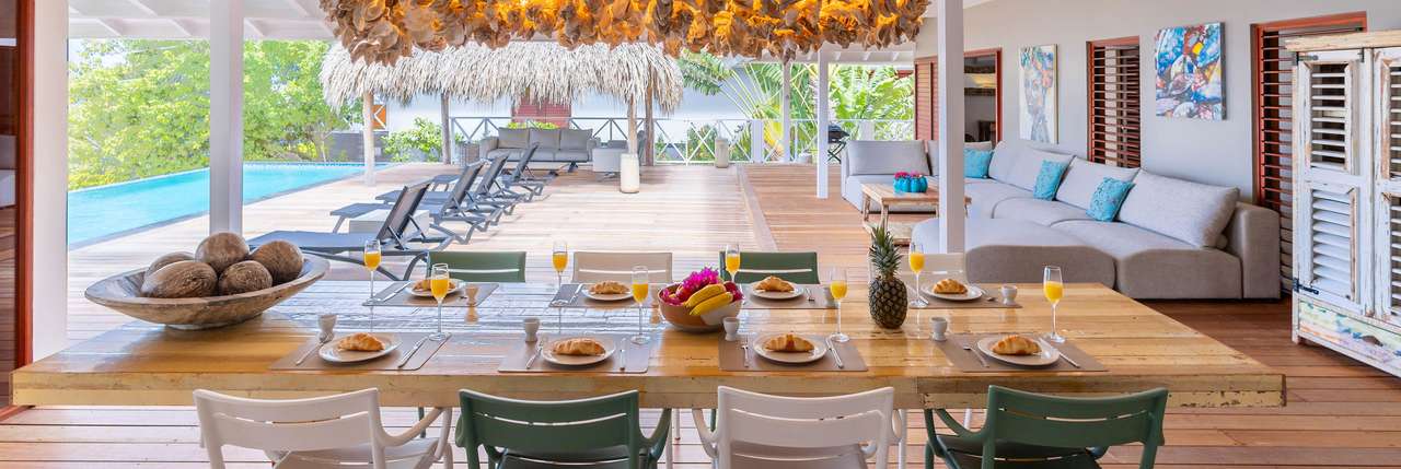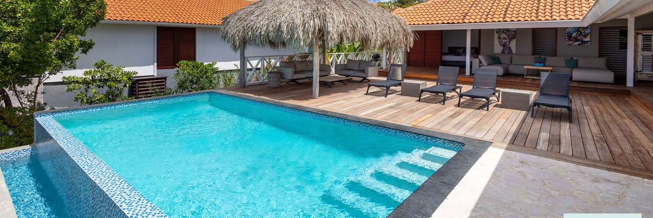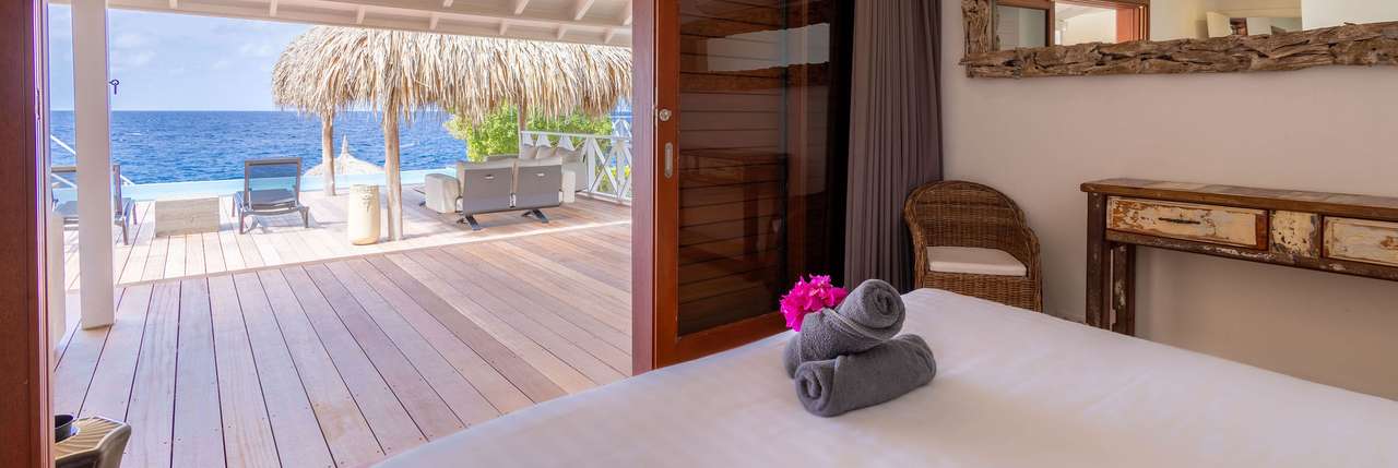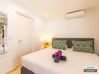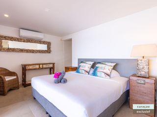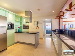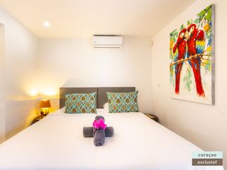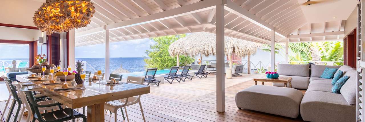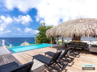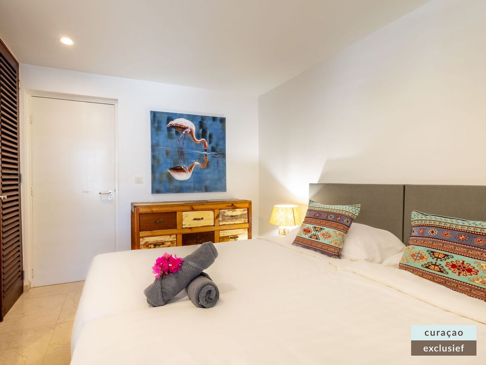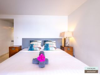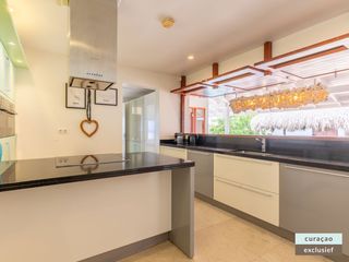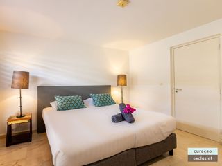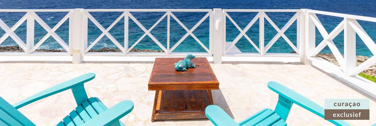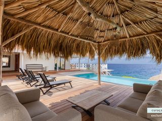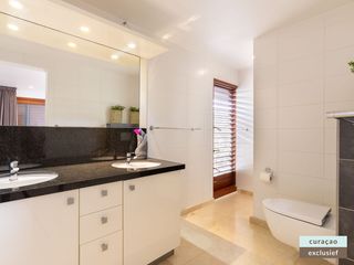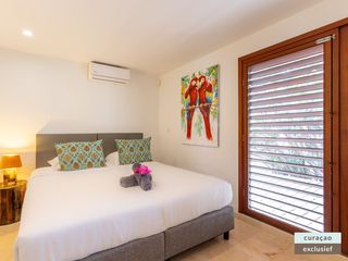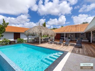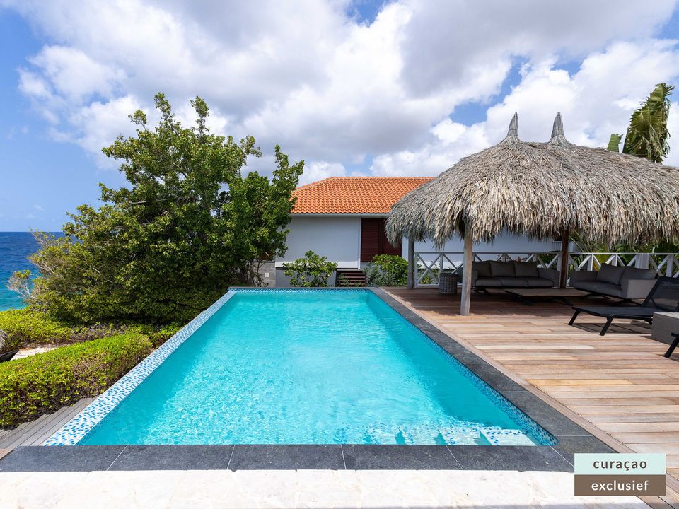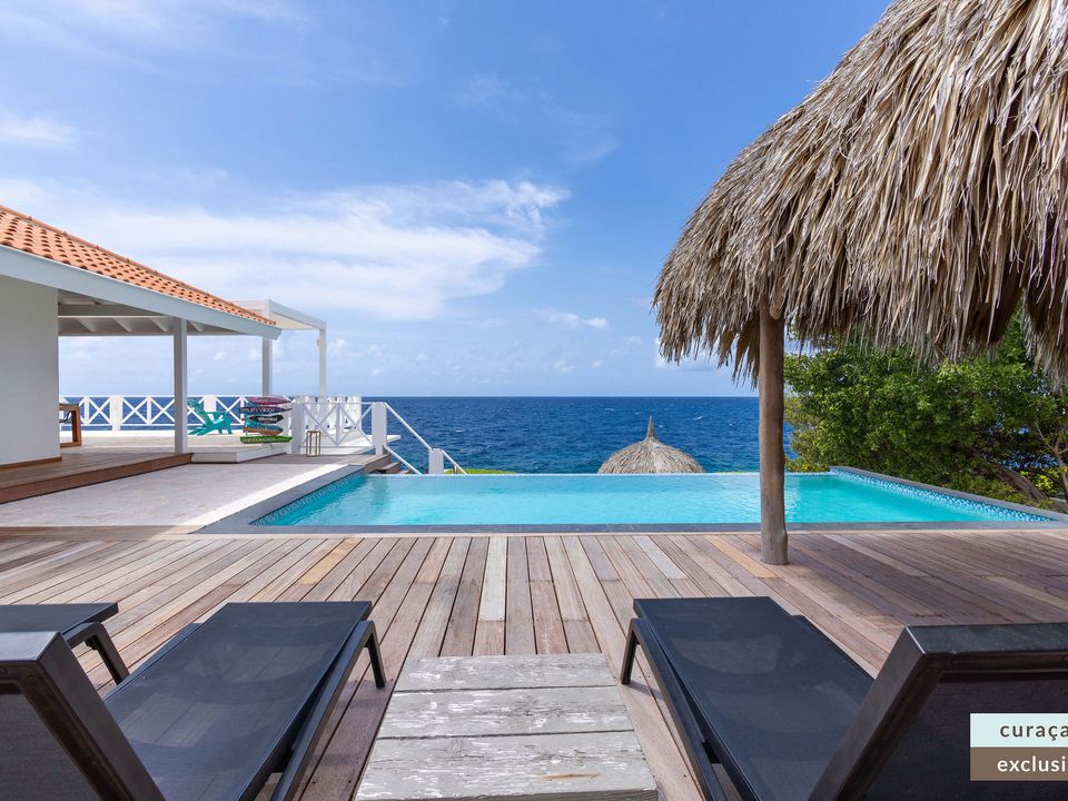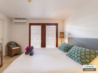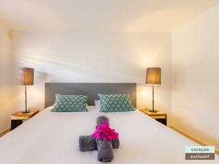 Die Villa verfügt über ein großes Wohnzimmer und ist mit einem Flatscreen TV mit Netflix und Sonos 5 Lautsprecher (tragbar) ausgestattet. Vom Wohnzimmer aus gelangen Sie auf die überdachte Veranda und die große Terrasse verfügt über eine mit Segeltuch überdachte Pergola. Von hier aus blicken Sie bis nach Willemstad.