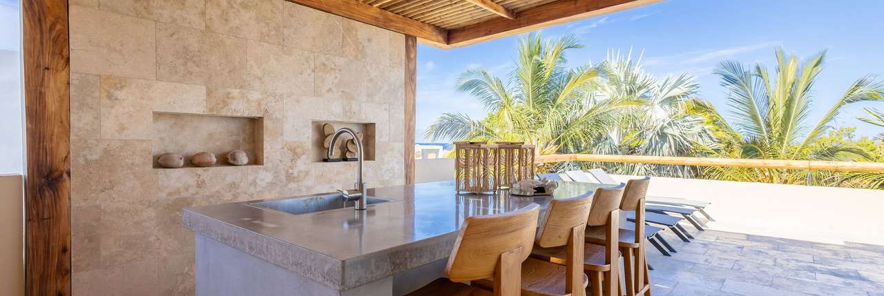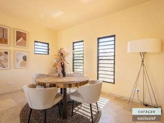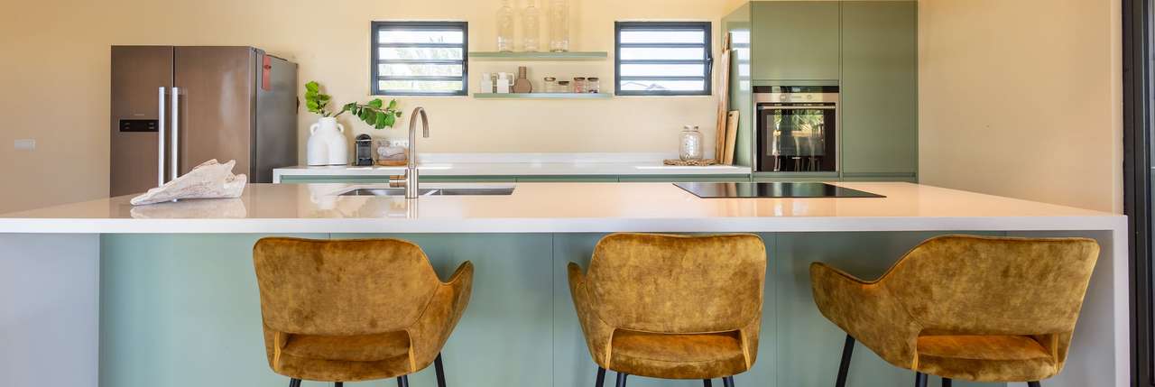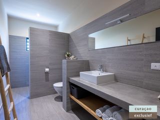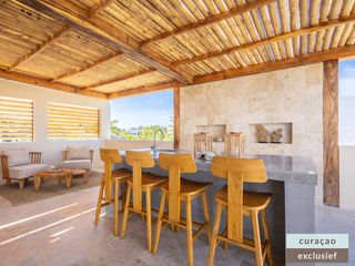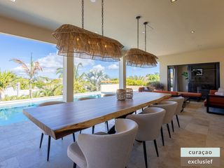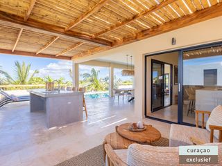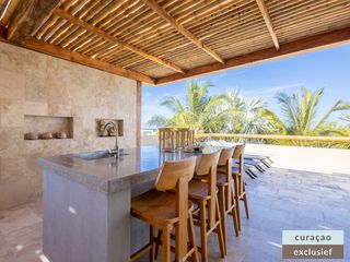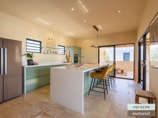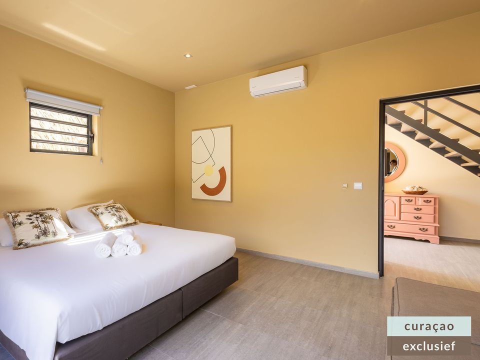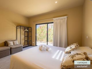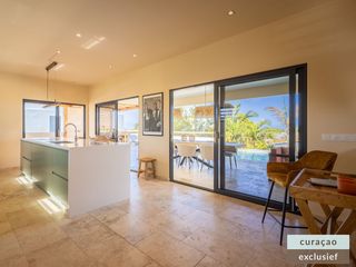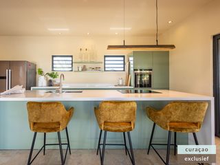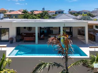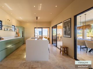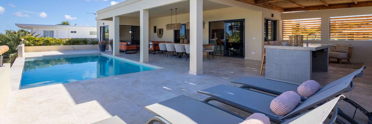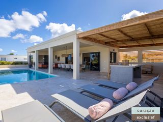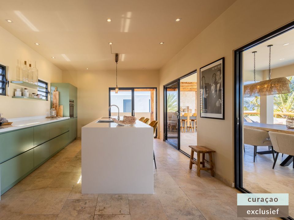 This modern spacious villa is located in the luxury villa district of Vista Royal and consists of 2 floors. Upstairs is the entire living and living floor with a luxury kitchen, which includes refrigerator, dishwasher, oven and Nespresso coffee machine. There is a spacious kitchen island with integrated breakfast bar. The living room is comfortably furnished with a nice large lounge sofa and TV. Through sliding doors you can reach the terrace, where there is a large dining table and a lounge area with a lounge sofa. At several places around the pool are sunbeds to enjoy the sun and the beautiful sea view after a refreshing dip.