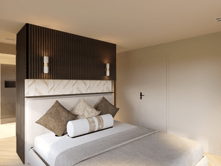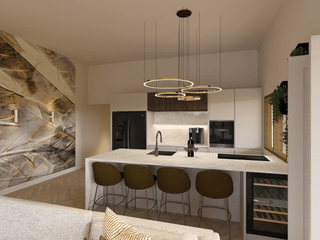 This 8-person villa is beautifully and luxuriously furnished. The living room has a spacious sitting area with a smart TV and views of the spacious pool deck. The kitchen has a cooking island with a breakfast bar and bar stools. The kitchen is fully equipped and includes a large refrigerator, Quooker, wine refrigerator, combination microwave, oven, Nespresso machine, dishwasher, etc.