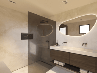 On the large pool deck, you can sit on the covered terrace, which has comfortable seating such as a lounge sofa and a large dining table. There is also an outdoor kitchen with a Basterd BBQ for preparing delicious evening meals.