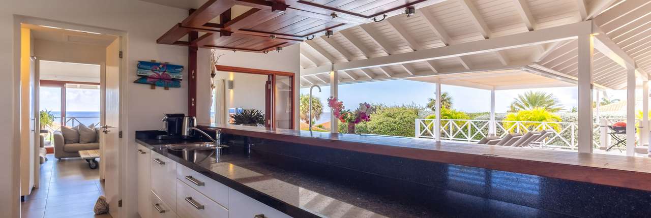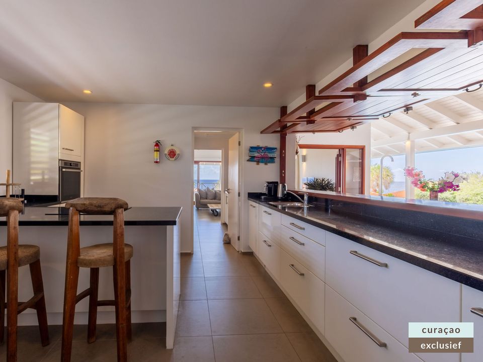 De zeer royale woonkamer is uitgerust met een TV met Europese zenders en een Sonos muzieksysteem voor de perfecte sfeer. De aangrenzende, zeer compleet uitgeruste keuken biedt werkelijk alles wat u zich kunt wensen: van een Amerikaanse koelkast, oven, vaatwasserr. Ook aan koffieliefhebbers is gedacht met zowel Senseo, Nespresso als filterkoffie. Daarnaast zijn er diverse extra’s zoals een airfryer, blender, broodrooster, panini ijzer, citruspers en staafmixer. De naastgelegen bijkeuken beschikt over een magnetron, wasmachine en droger.