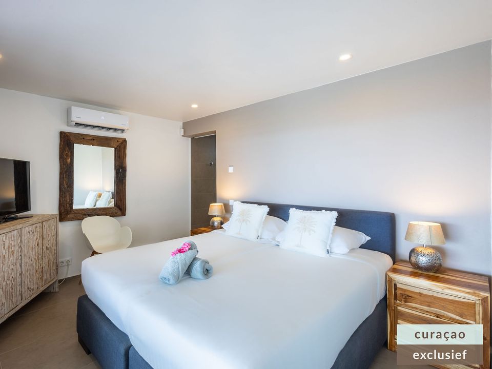 De villa beschikt over vier comfortabele tweepersoonsslaapkamers en drie badkamers. De master bedroom is voorzien van een flatscreen tv met alle Europese zenders, zodat u ook hier in alle rust kunt genieten.